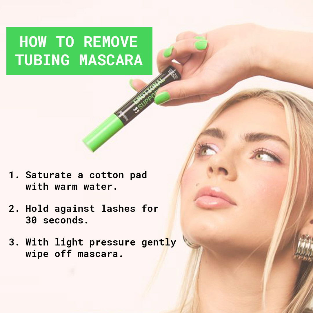 How to remove: Simply use a cotton pad soaked in warm water and hold it against your lashes for 30 seconds. Then gently wipe mascara off lashes.