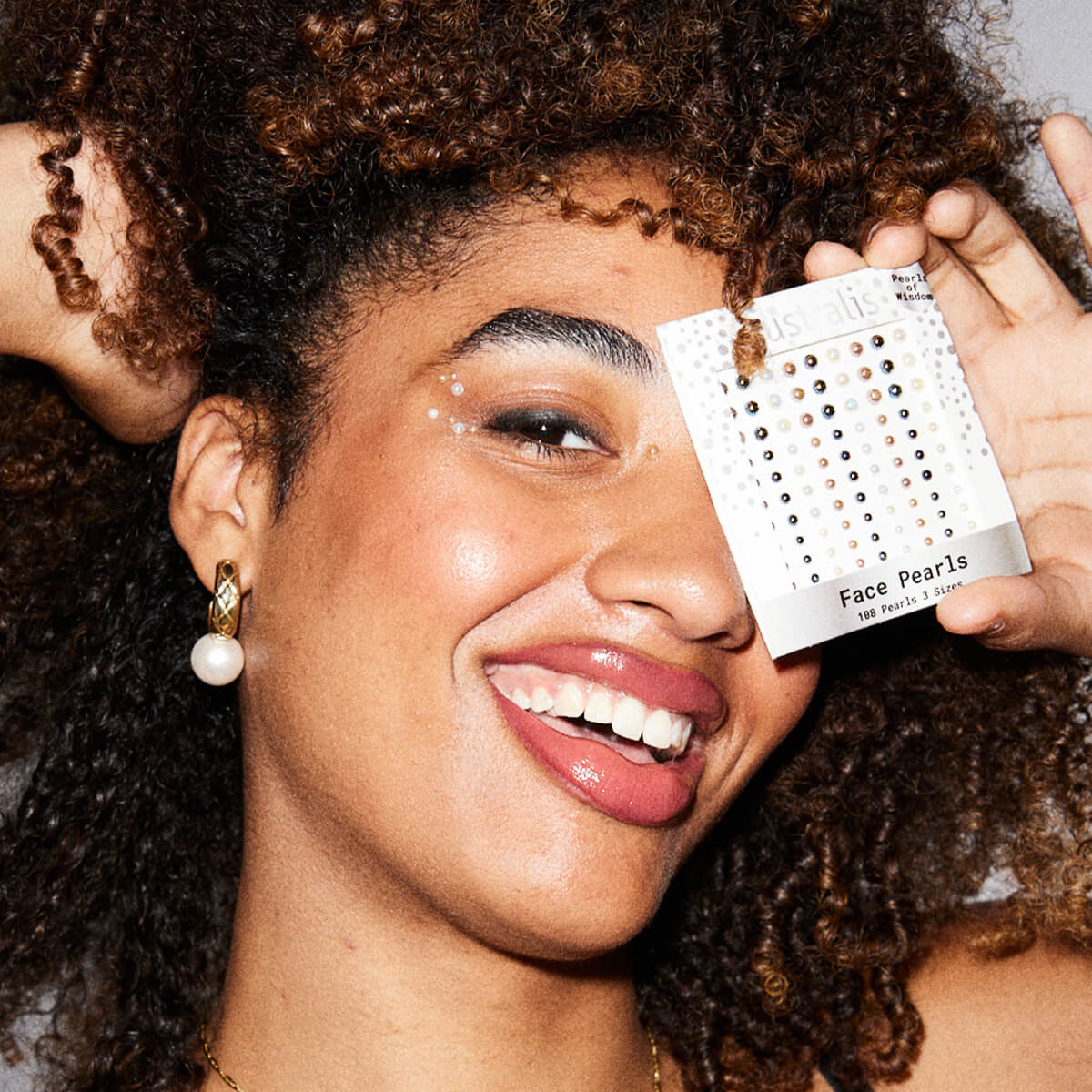 Shine bright with these hypoallergenic self-adhesive face pearls, suitable for sensitive skin. Easy to apply and remove, these pearls let you shine bright effortlessly.