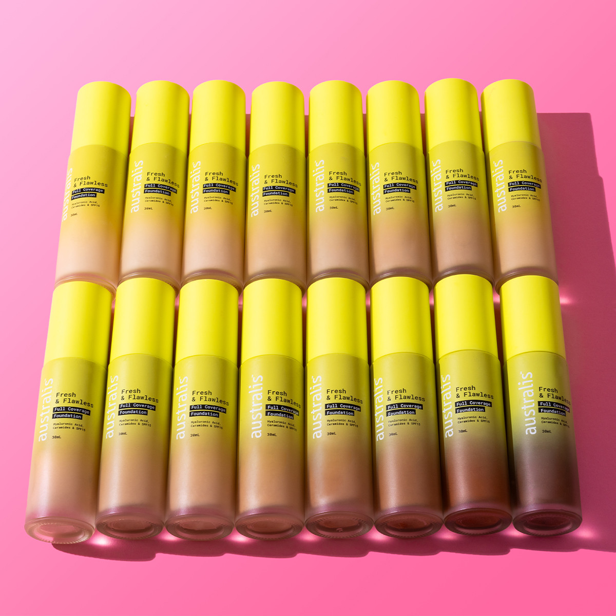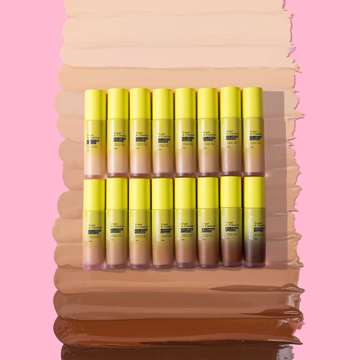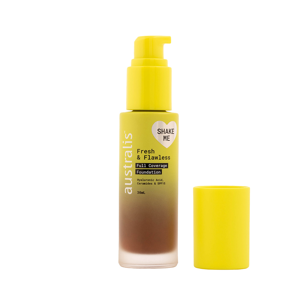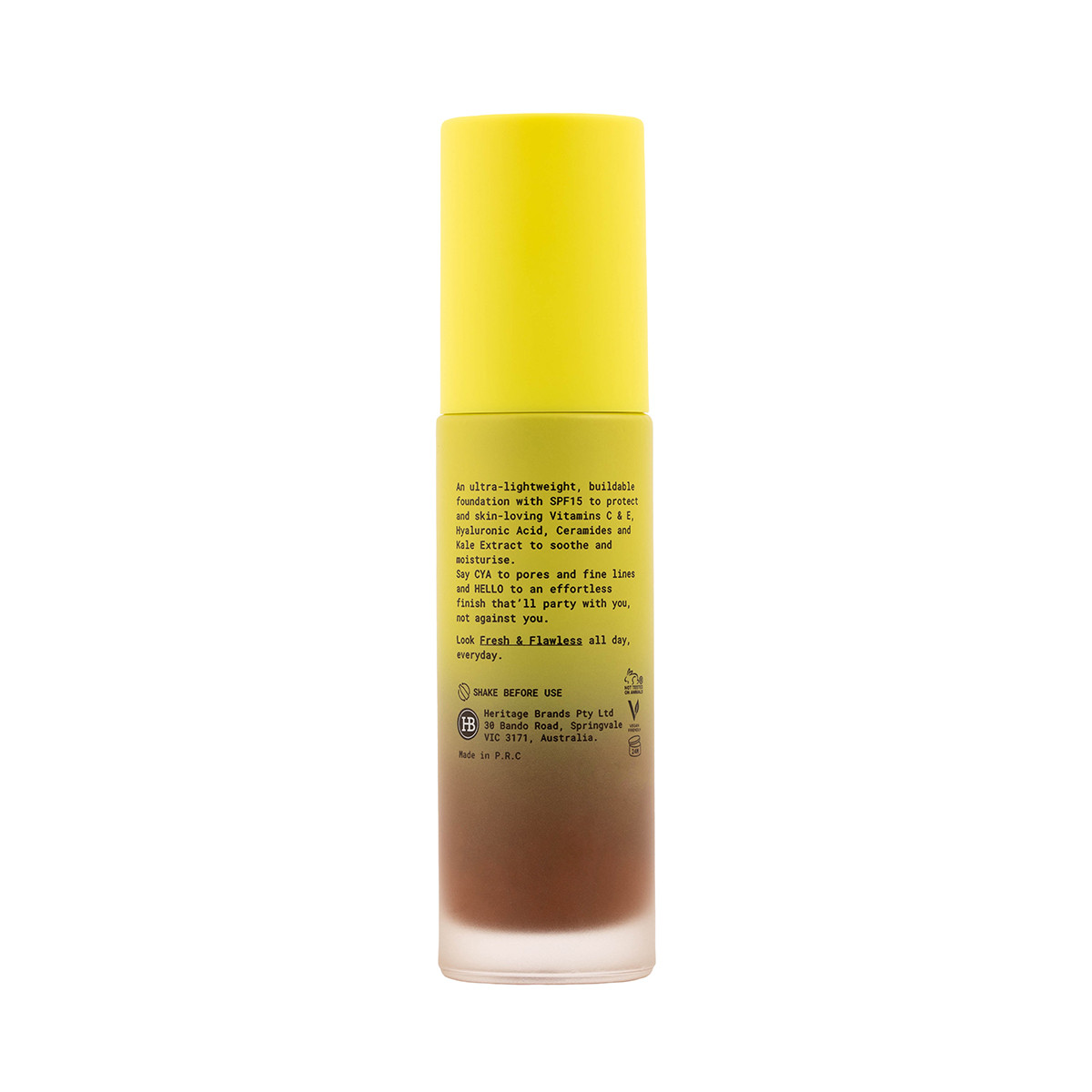 Create Flawless looking skin with our buildable ultra-lightweight foundation. This Vegan Formula is infused with Vitamin C and E to assist in the control of excess oils, hyaluronic acid and ceramides to hydrate and nourish your skin. SPF15 helps protect against harmful UV rays from the sun and computer screens for everyday protection. Designed perfectly with Fresh & Flawless Concealer and Powder for the ultimate fresh and flawless looking skin!