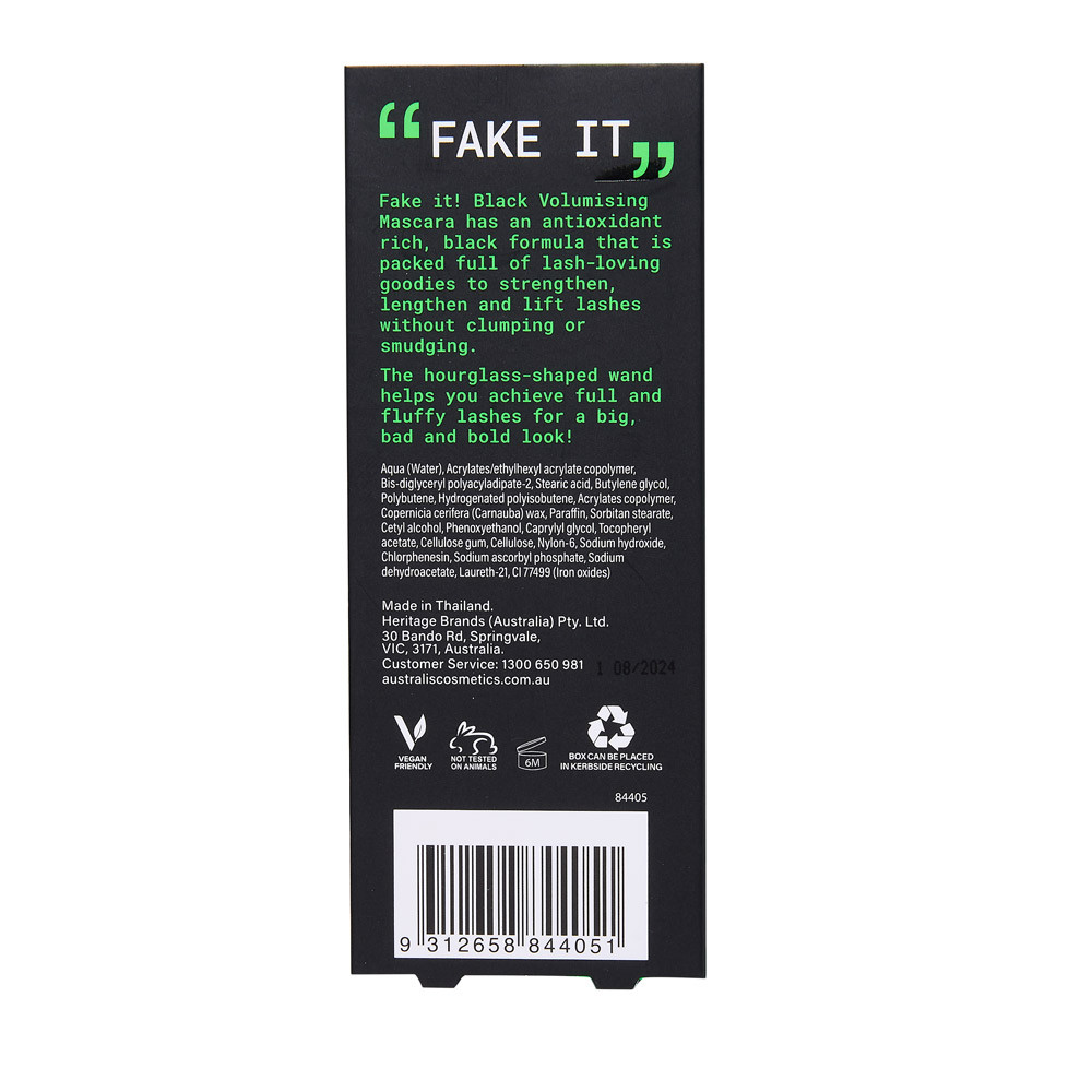 Fake It! Volumising Mascara has an antioxidant rich, black formula that is packed full of lash-loving goodies to strengthen, lengthen and lift lashes without clumping or smudging.